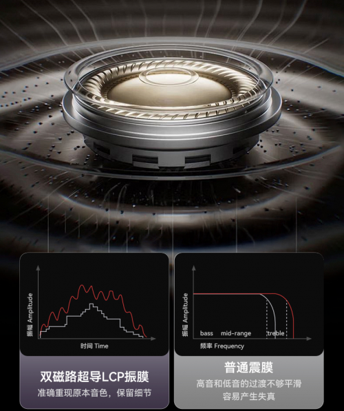 核心采用“千元双磁路超导LCP复合振膜”,这一高端音响常用材料首次下放至百元耳机,在配合12mm永磁极单元,Plume在低频能量与声场广度上远超同价位产品:高频延展清晰透亮,中频饱满自然,低频下潜浑厚而不轰头,进口生物纤维与复合PU材料的加入,使整体声音更均衡耐听,相比常规耳机震膜,这款在全频段的表现更加协调均衡,真正做到了“全频无弱项”!