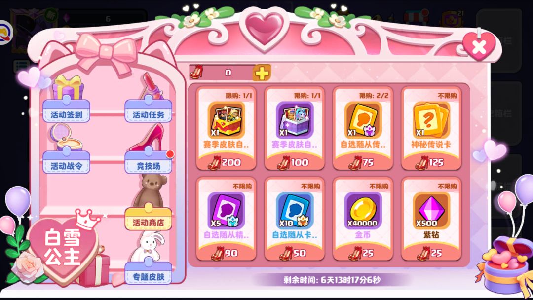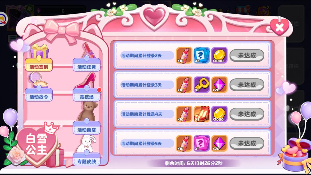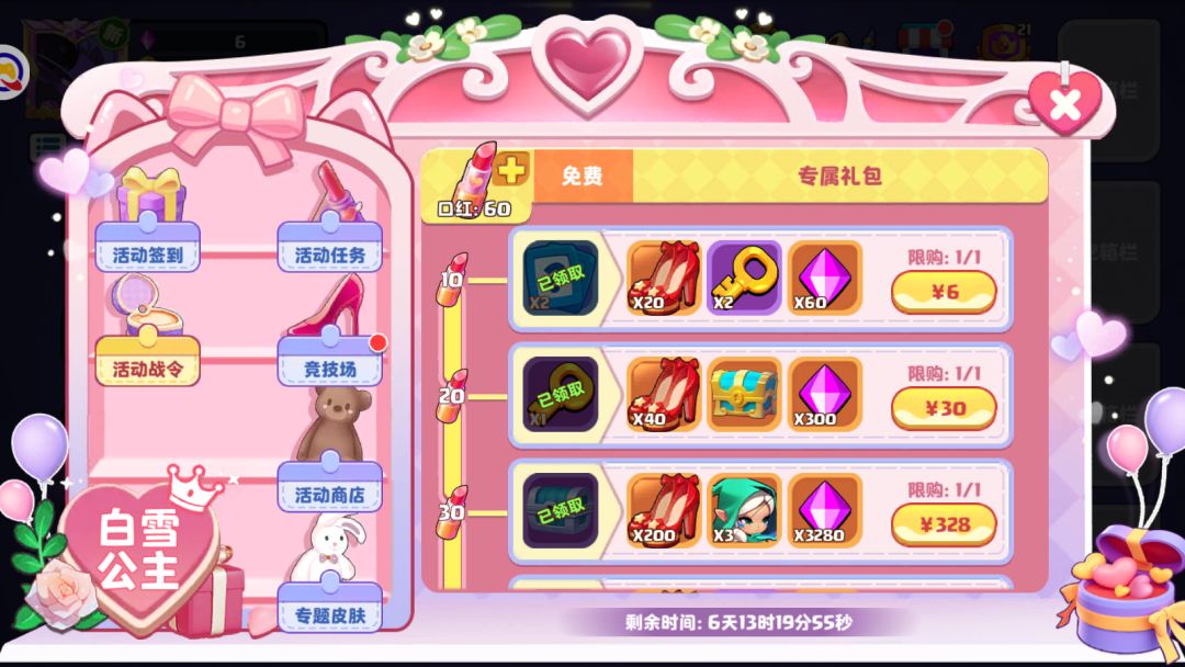 完成一些简单的任务,就可以领取数个高等宝箱、30个红色高跟鞋、多份随从卡等奖励,任务没有难度,最快一天就可以拿到2个黄金宝箱、10个红色高跟鞋、1个尊贵宝箱!!!