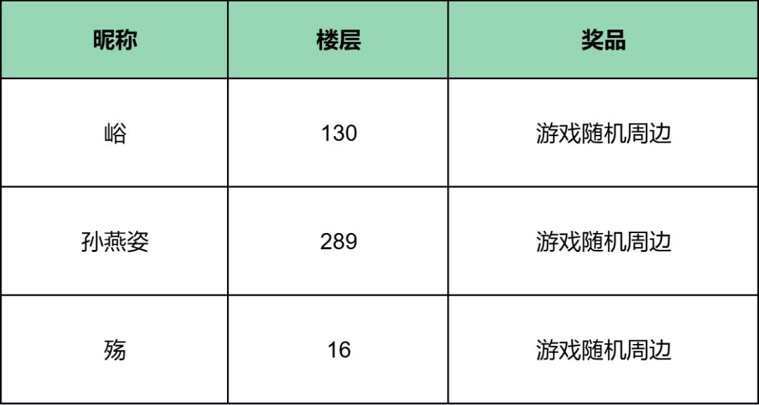 未按照活动要求参与的玩家顺延至符合要求的楼层,请顺延获奖的玩家提供姓名、地址、电话(缺一不可)