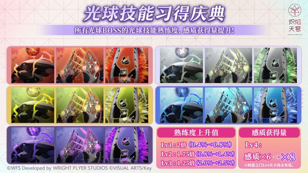 ● 同时开放3种光球BOSS「异度监测之眼」「恶之左肌&正之右肌·空无」和「阿蒙之门」的全部各5个关卡(RYPWB)的光球技能熟练度提升!具体提升数值如下: