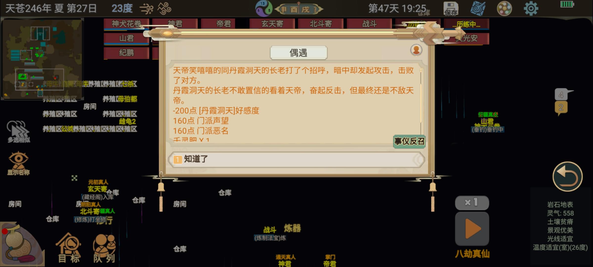 注:这里不用等他寄托完就已经可以打门派了,不过为了后期减少一些钓鱼收集功法,就多花一些时间先挑衅收集了们派功法再去打吧,如果直接速通,就把阵眼调整一下画“玄甲符”和天甲符,带上6个玄牝珠去打门派吧,基本上包过的。