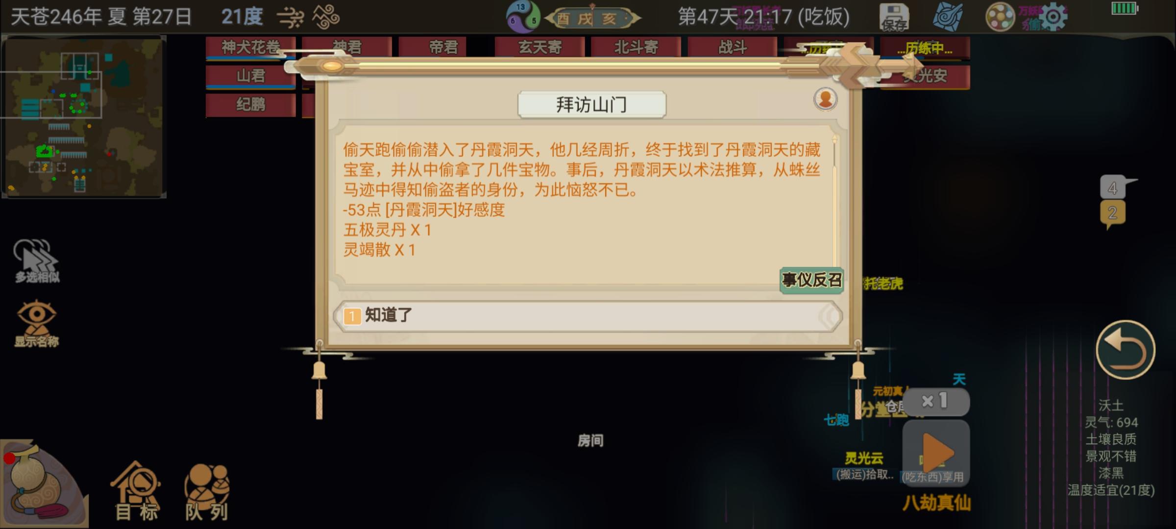 天帝和炎帝一起去【丹霞洞天】挑衅和偷东西。
