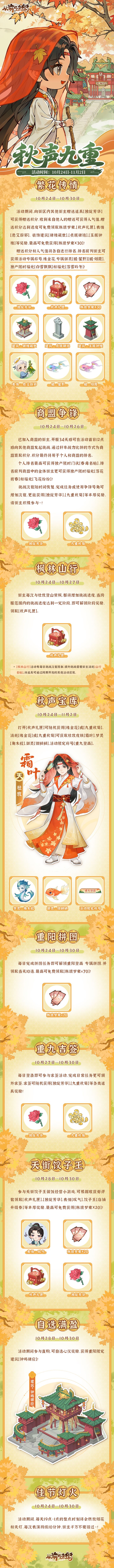 消耗「缘金花」或「九重秋菊」可兑换获取杜牧皮肤【霜叶】、梦灵【角木蛟】、御灵【锦鳞鳞】、活动限定称号【重九登高】!