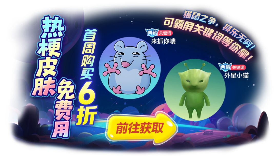 贱笑老鼠关键词「来抓你咯」能否逃脱「外星小猫」的追捕?速速上线开启猫鼠大战!