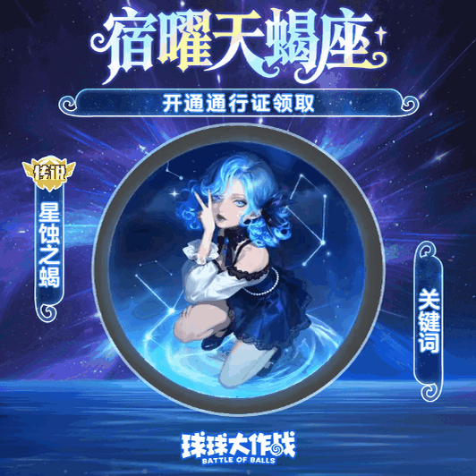 活动时间:10月17日-11月13日活动内容:开通就能立得传说关键词「星蚀之蝎」一双清透眸里藏着星海 ,极致甜美的外表下是迷人的危险!