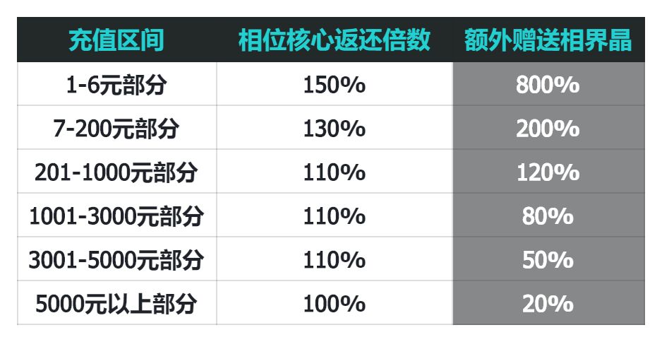 测试期间通过直接支付购买游戏内礼包,也将根据礼包实付金额,按照"【规则1】基础充值返还规则"中的计算标准在正式上线后返还对应充值金额的相位核心,并额外赠送相界晶。