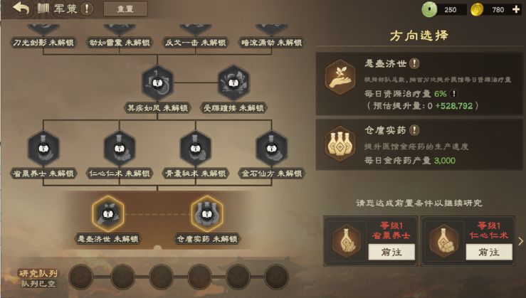 ● 每30天仅可重置一次,重置返还全部威望,但需重新研究,请主公谨慎选择。