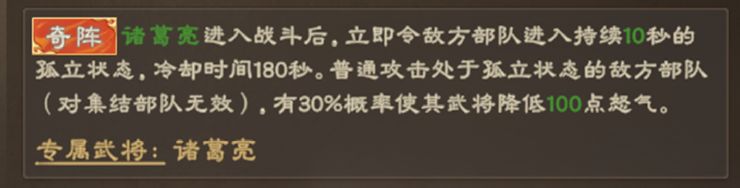 诸葛亮·神机妙算·改:主将释放技能后,对敌方部队施加狂风状态。
