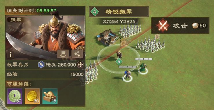 ● 击败精锐叛军可获得威望以及更多的武将经验,且等级越高可获得的威望和经验越多,威望可用于军策的研究。