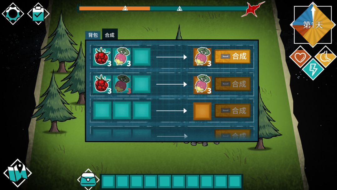 2. 资源生成系统&资源合成系统,又是一个类饥荒游戏的超级无敌大坑,由于引入了动态拼装地图的机制,也就是制图师的设定,导致每一次放置地图,都会导致资源生成点的变动。计算相连块的总面积,决定资源的等级,又是一个巨大的坑点。(不要接触二维数据,会变得不幸)。其次,资源每天刷新,也需要一个消耗机制,不能让它随着玩家拼地图无线增值,毕竟我们从零开始的构架旅程,几乎无法支持手搓一个LOD……