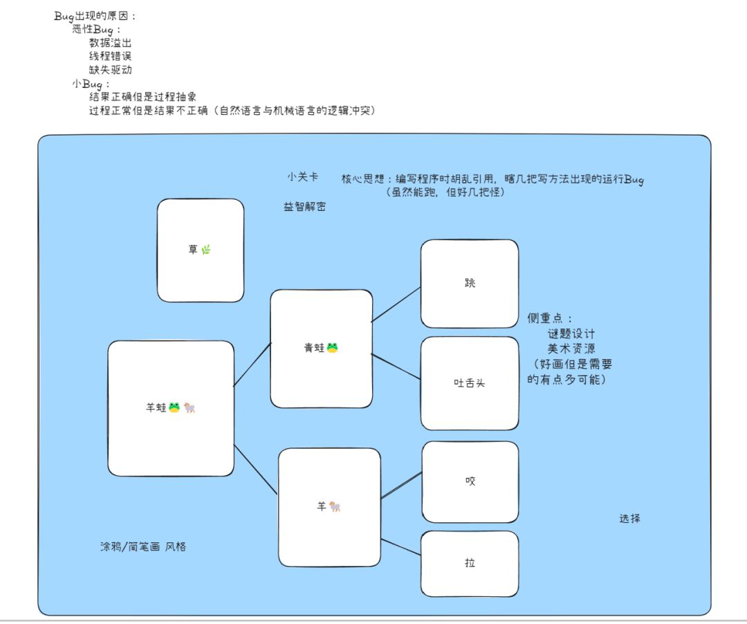 但我们融入了一些抽象的变化。比如,当玩家进行咬的操作时,我们会让一个青蛙头直接从羊嘴里弹出。。。