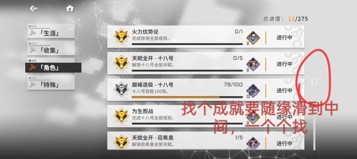 【角色成就显示】角色的成就能不能放到角色生涯里显示,两边都显示。现在要去成就栏一个个往下翻太麻烦了。