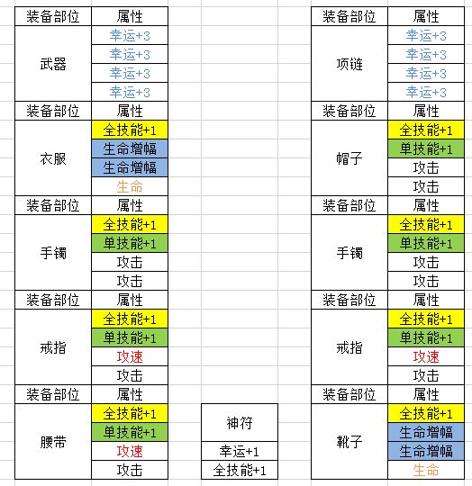 关于洗练,游戏开局初期洗30级以下橙色装备,武器和项链洗11运或12运都行,其他部位全技能+经验百分比就行,毕竟过渡。等红色装备多了需要洗60级以上红色装备用来升级星王,头部和护腕可以洗全技能+两条单技能,也可以如上图那样洗,看实际情况来,因为戒指、腰带全技能+单技能+30满攻速不如头部和护腕全技能+两条单技能容易洗。也可以不追求极致属性(比如暂时洗攻速20以上 生命百分比4以上即可)先做一身星王提升对战能力,中后期洗出来毕业属性红装正好用来垫星王(关于垫星王即触发保底机制必定升级成功,用来升天龙)