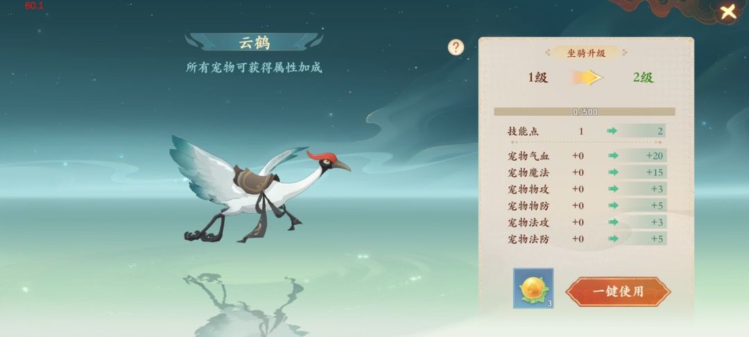 提升坐骑技能等级将为宠物带来包括物攻、法攻、双防、气血等的全面属性加成,且能够解锁更多的坐骑技能与技能点,目前坐骑等级上限为25级。