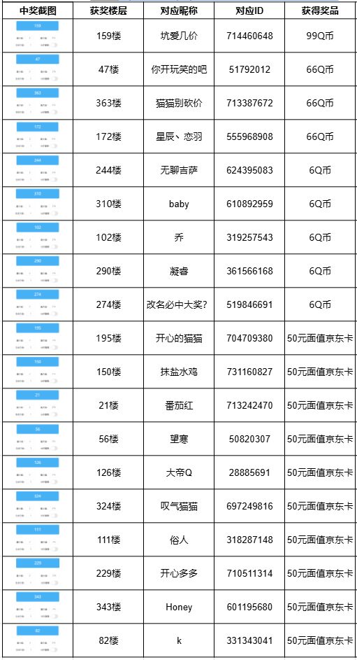 活动截至时有效楼层为2-376楼,经随机数抽取获取获奖楼层和名单如下: