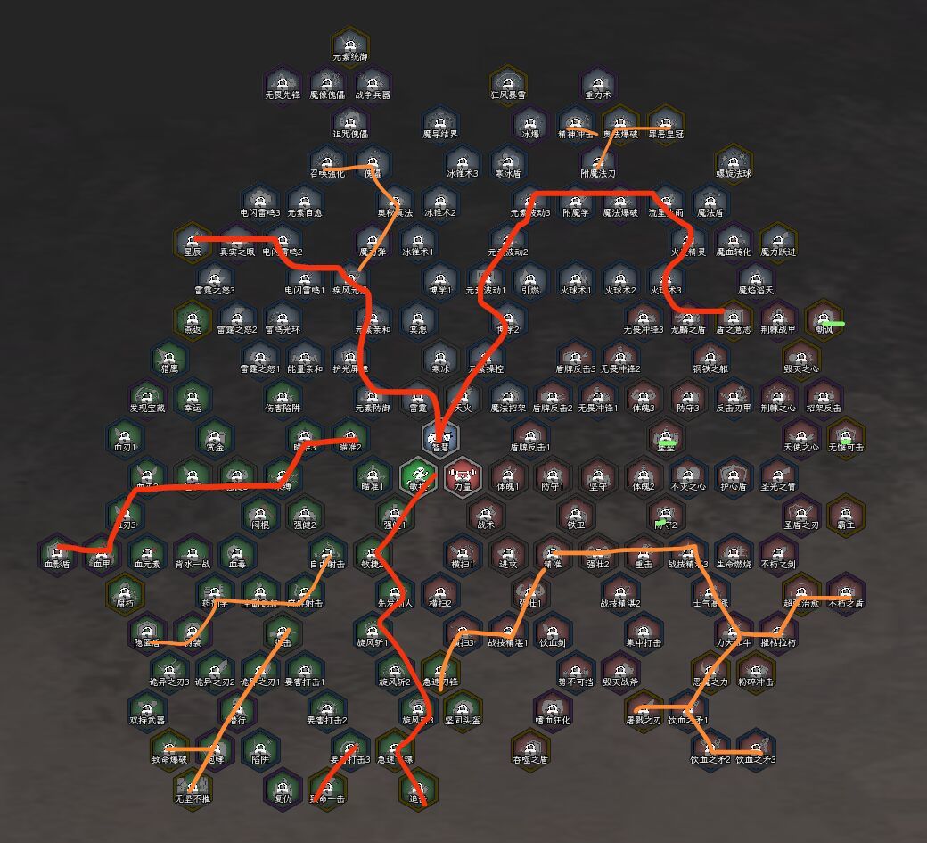 1-20关之前 直接走右边红色元素路线,智慧-灭火-元素操控-博学-元素波动1-元素波动2-元素波动3-附魔学----盾之意志