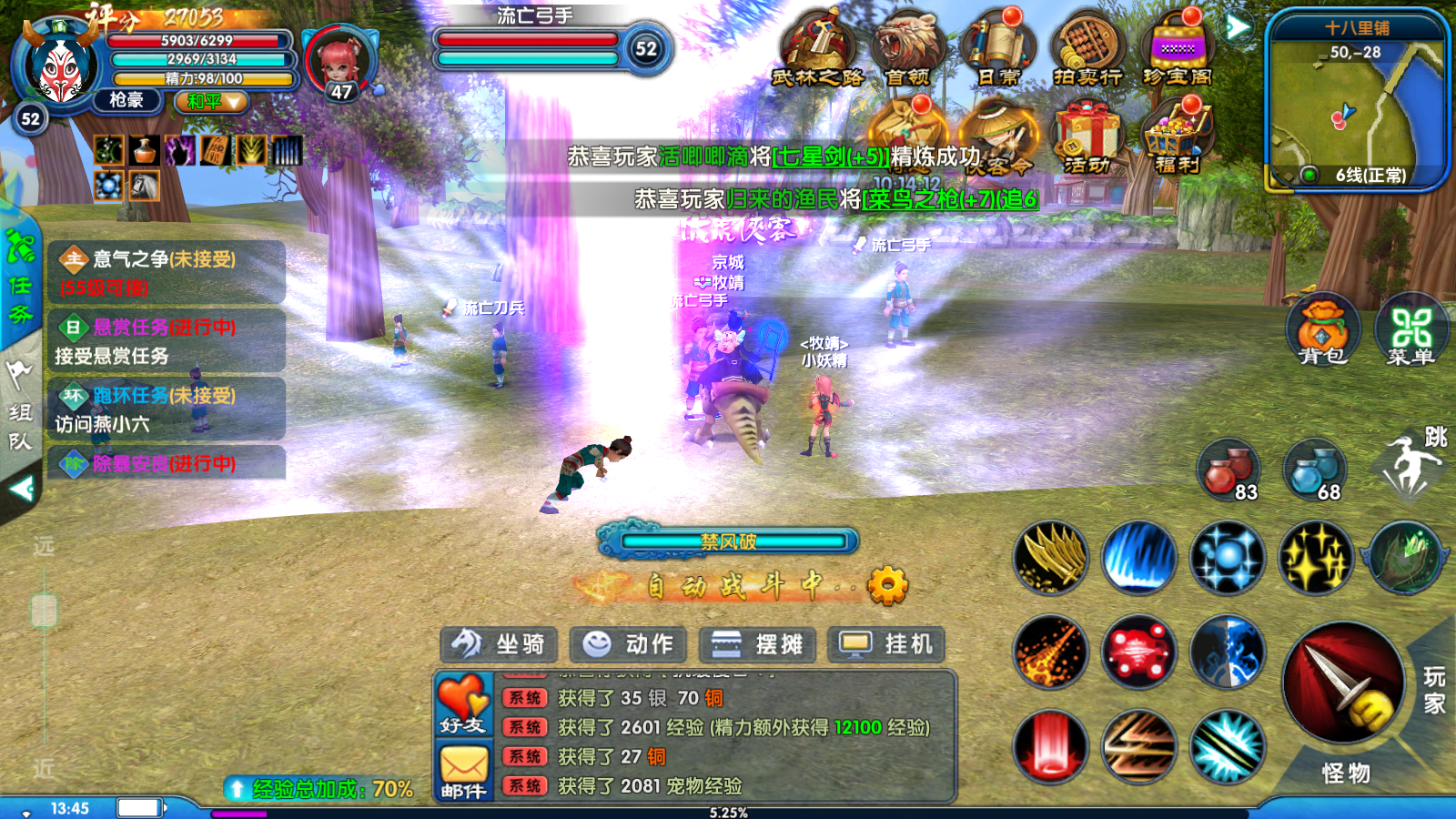 - 剑客(游侠进阶):高爆发刺客,「追魂剑」突进暴击 +「回风舞柳」闪避提升 20%,单体伤害为前期天花板,适合快速清 BOSS、秒脆皮;
