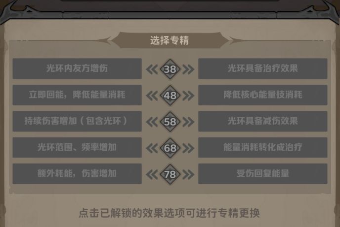 - 提升属性:光环效果、回能效率