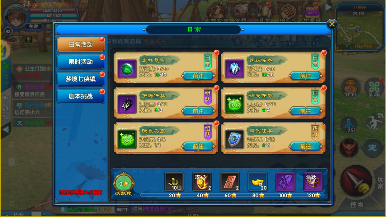 林悬赏任务中,橙、紫品质任务性价比最高,每次消耗 5 点精力却能产出≥5 万经验、金币及珍贵道具。建议用 “悬赏令” 刷新品质,连续 3 次未出高品则止损接取,避免浪费资源。将主要精力投入 “梦境七侠镇” 等限时活动,入场消耗 10 点精力,通关可获 15 万经验且概率掉橙装。搭配 1.5 倍经验符与周卡加成,能实现经验 3 倍爆发,同时同步进行无精力消耗的帮派传功,叠加收益。