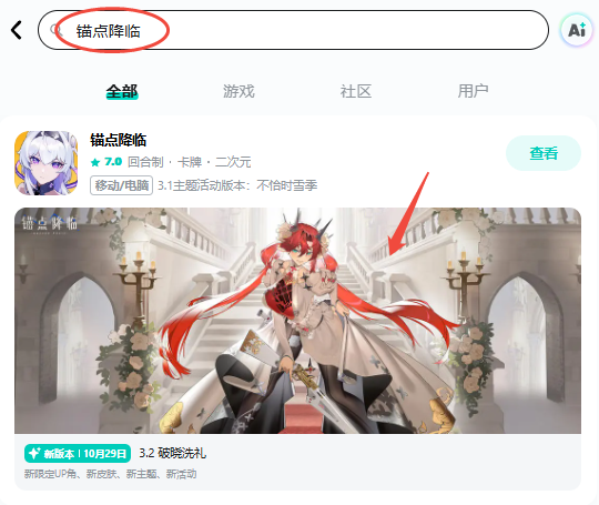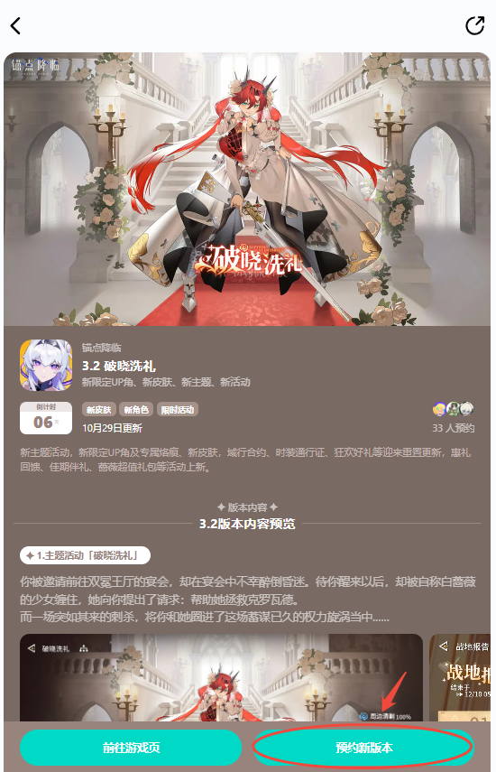 方式2:在TapTap中搜索“锚点降临”,点击下方的图片即可进入“预约新版本”界面;