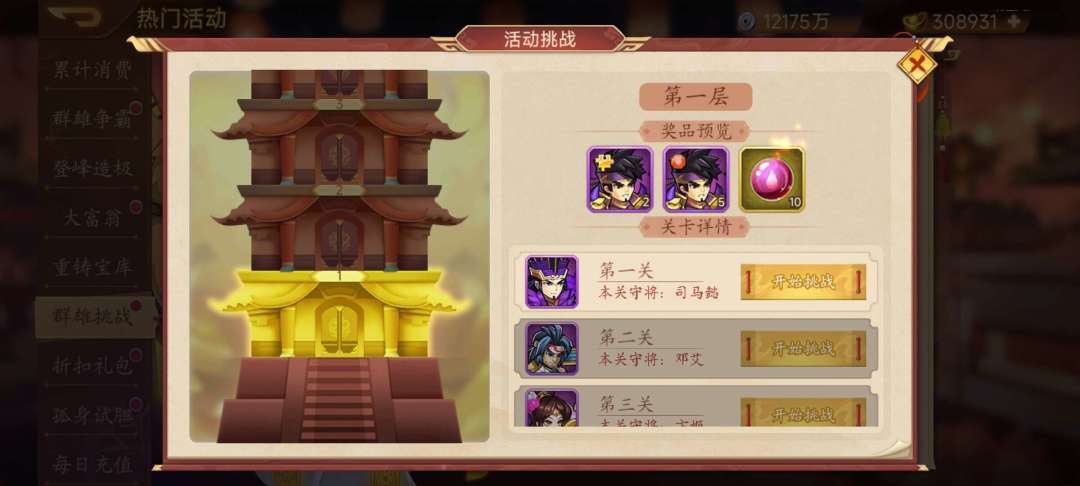 活动内容:活动期间开启限时副本挑战,活动副本共有7层,每层4关,每次过关可获得奖励。每日解锁一层可进行挑战。