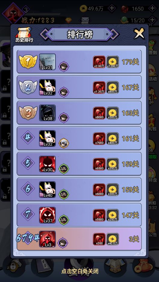 左上角的历史排行榜还可以查看之前的排行榜情况