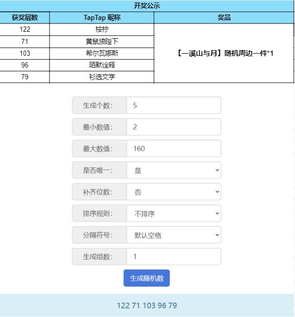 根据开奖结果显示,恭喜以下幸运的玩家们获得奖品: