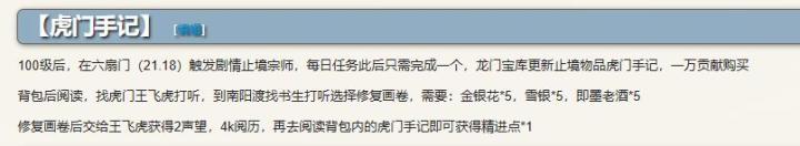 六门新晋百级玩家,提前积攒16000贡献,用于购买百级刀--绣春刀、虎门手记。