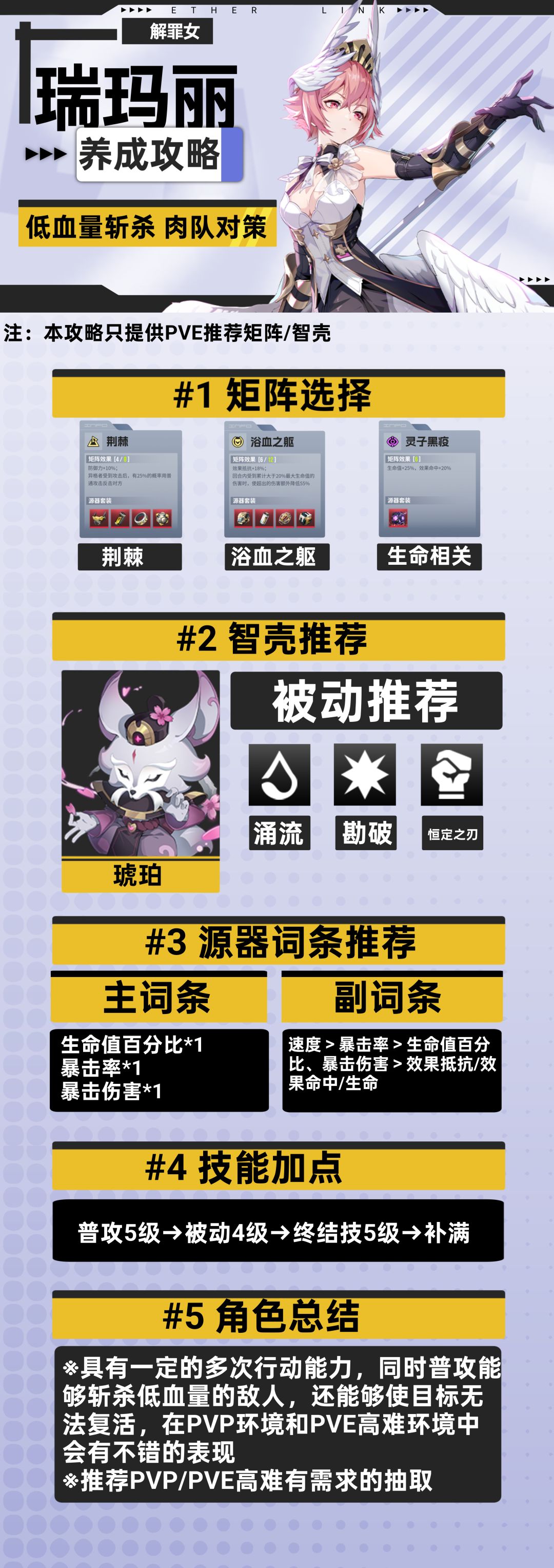 瑞玛丽作为PVP异格者更多还是按照个人练度进行调整,没有最优选择