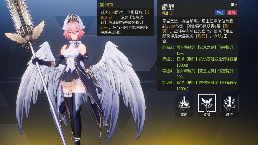 瑞玛丽的被动效果会在场上任意单位受到伤害后按一定比例转换为自身的刑罚层数。当任意单位被击败时,瑞玛丽会立即获得最大层数的刑罚