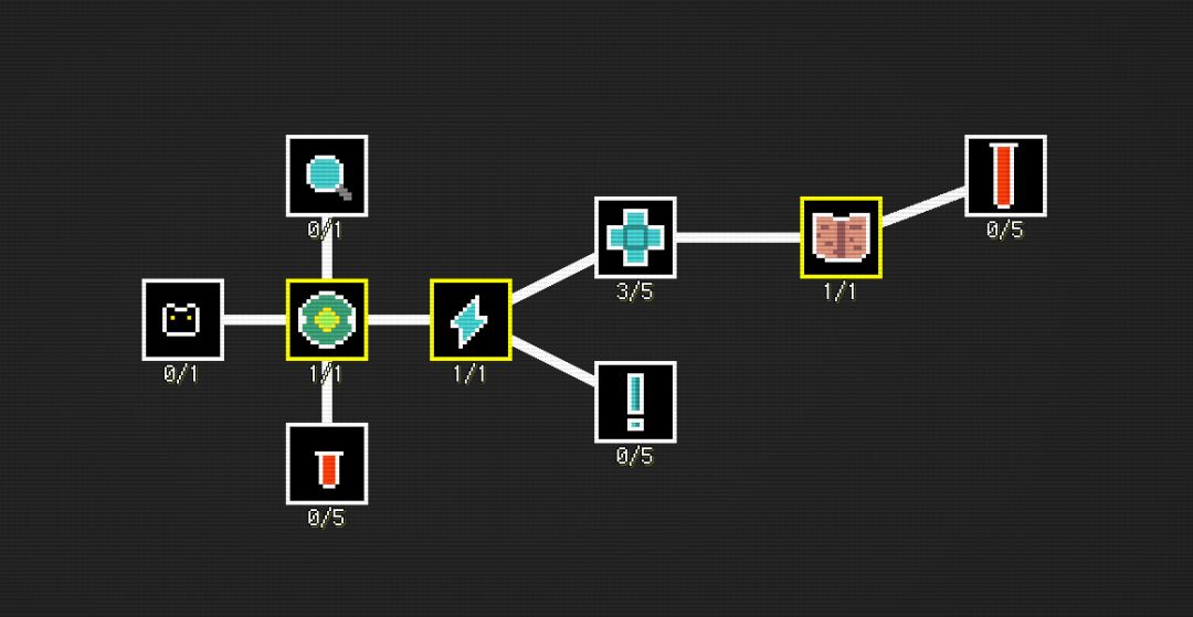 游戏的技能树基本完成,绘制了一些极简风格的图标,玩家可以通过战斗获得资源,在技能树升级各种能力,升级后青蛙能力逐渐增强,游戏后期可以爽快割草