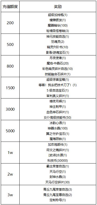活动期间内充值达标可获得相应奖励以及低档位所有奖励!