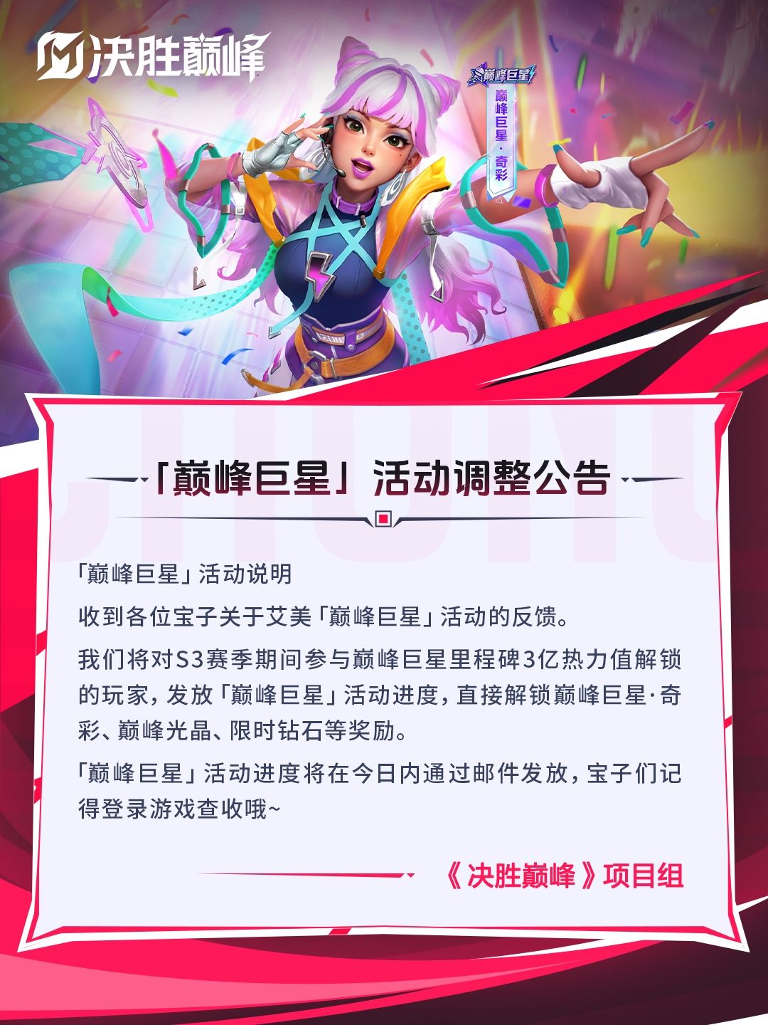 「巅峰巨星」活动调整说明