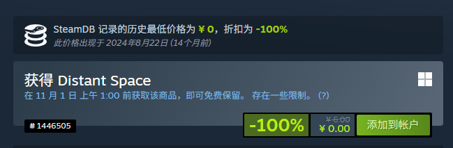 【Steam喜加一】《Distant Space》现可限时免费领取!
