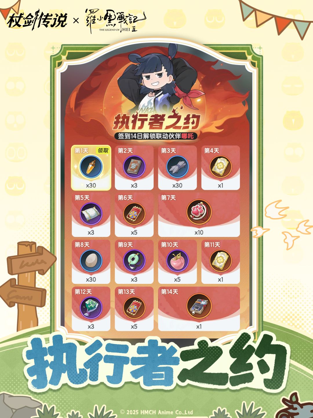 活动期间,参与签到即可领取道具奖励,签到14天可直接获得哪吒手帐!