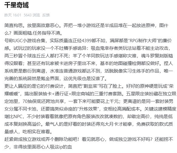 有玩家认为,制作小游戏的创作者水平不足,制作出来各自充满瑕疵的内容令玩家游玩体验糟糕