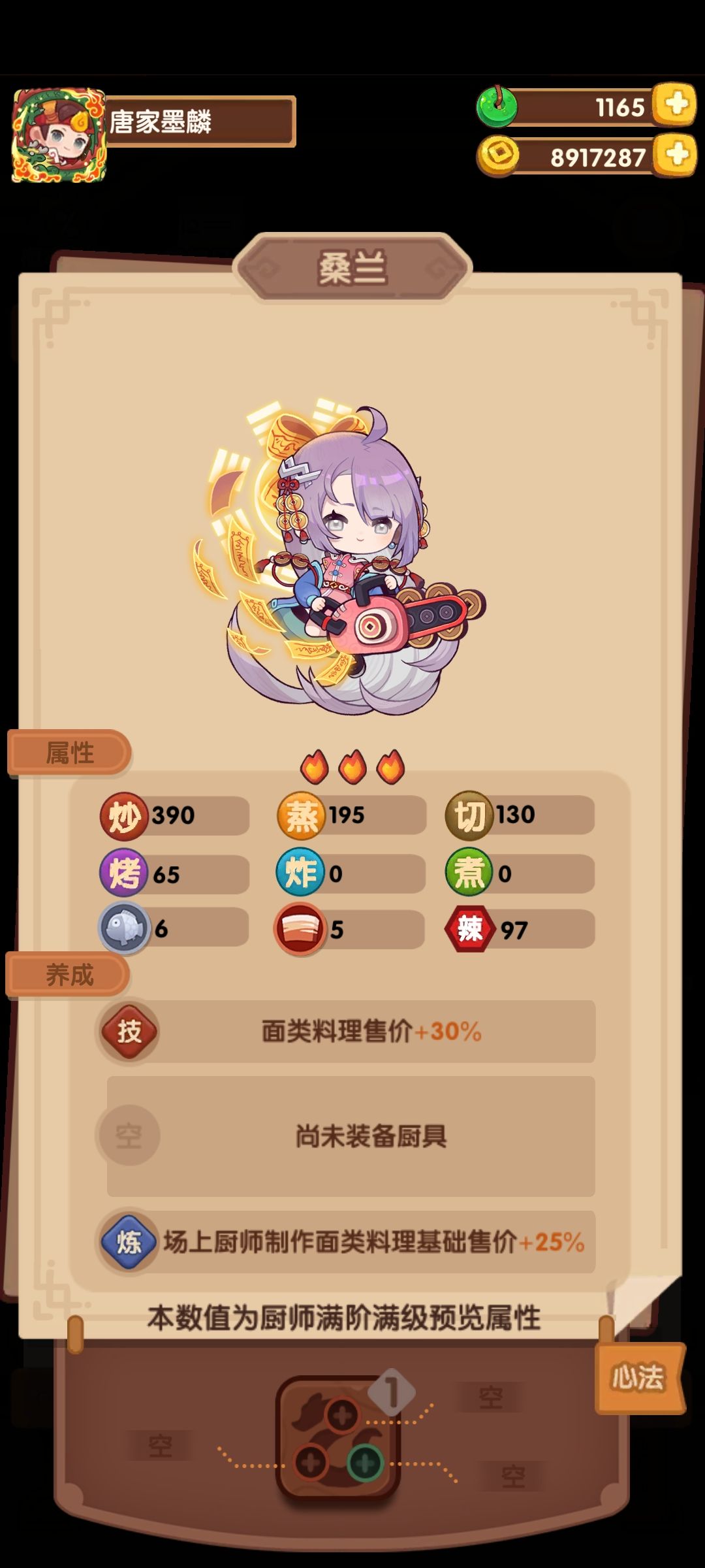3🔥厨师 桑兰。面类基础售价光环,作坊版本的舒婷是吧