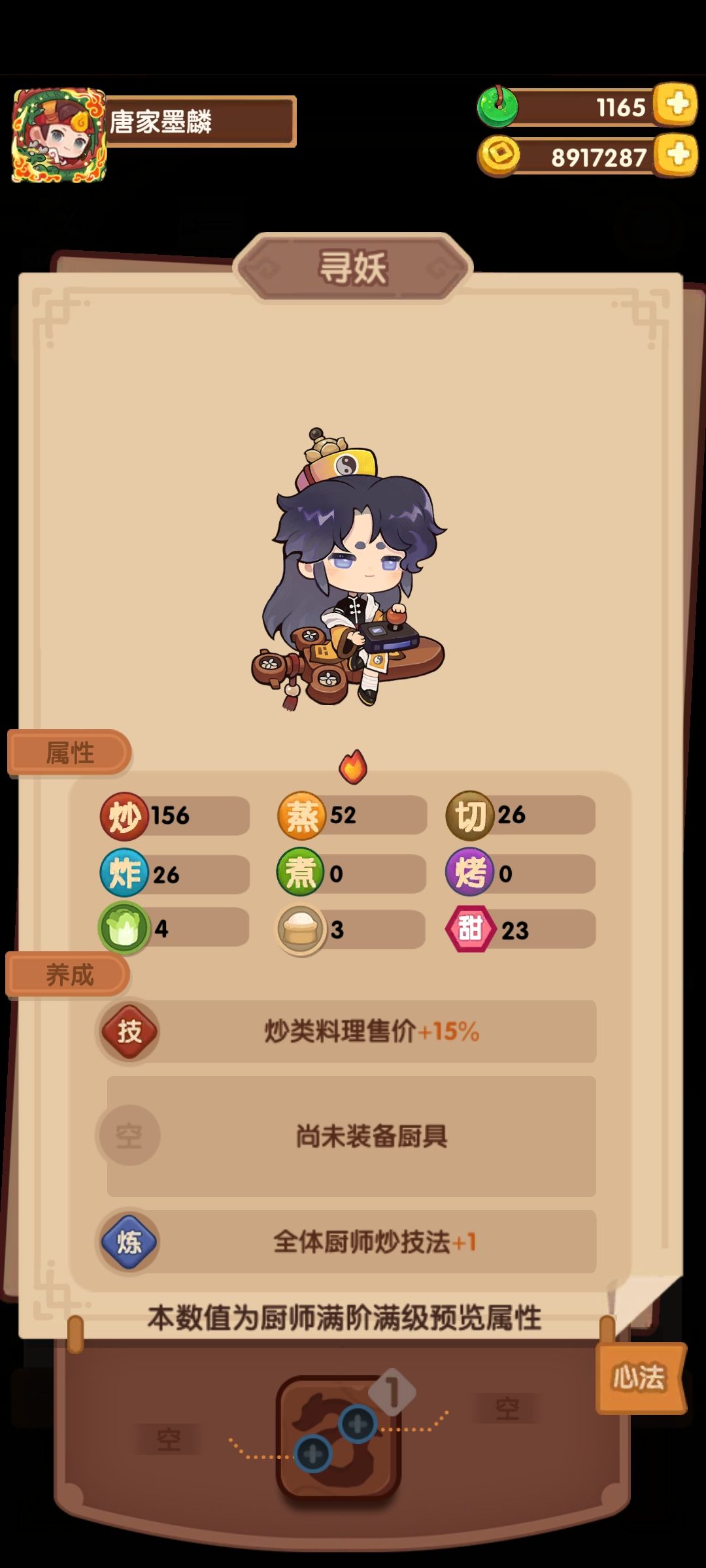 1🔥厨师 寻妖。基修炒+1