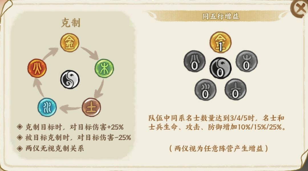 关于绘世录阵容的基础结构类型,按羁绊分有五行两仪,五同阵容获取25%各属性加成,五行方面我认为看个人喜好选一个玩就行了!