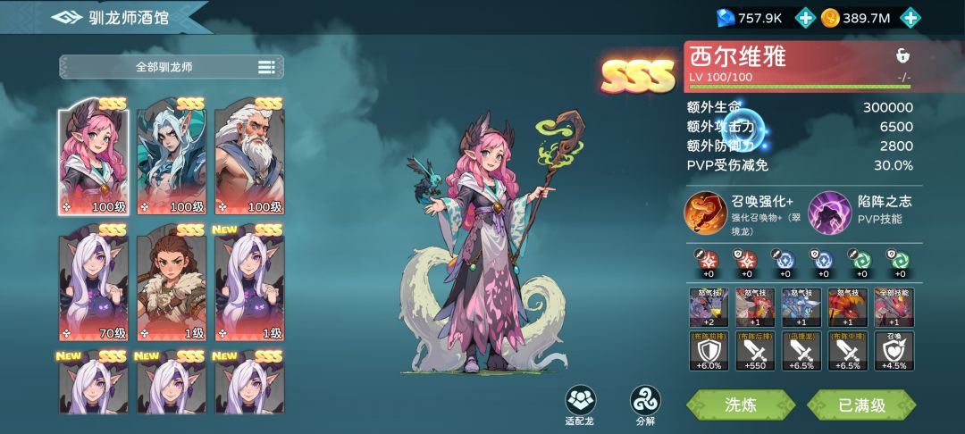 本月,突然在群里看到了国际服要关服的消息,赶紧下了一个来体验一下。官方这回也终于大方了一次,所有材料都可以通过兑换码获得,也是让我体验了一波破解版的感觉,升级升到手抽筋,也算了圆了我以前的梦想。各种sp,sss龙直接升满,等级,宠物,臻品,驯龙师,秘宝等等基本上全部拉满。除了装备,秘宝等级和秘宝镶嵌的宝石等没升满之外,其他基本上都拉满了。没拉满的原因一个是不需要了,目前我已经主线,精英主线,装备本,落龙谷全通,竞技场也都是第一名,再升战力没有任何意义,另一方面也是现在服务器很卡,升级很慢,太费时间。