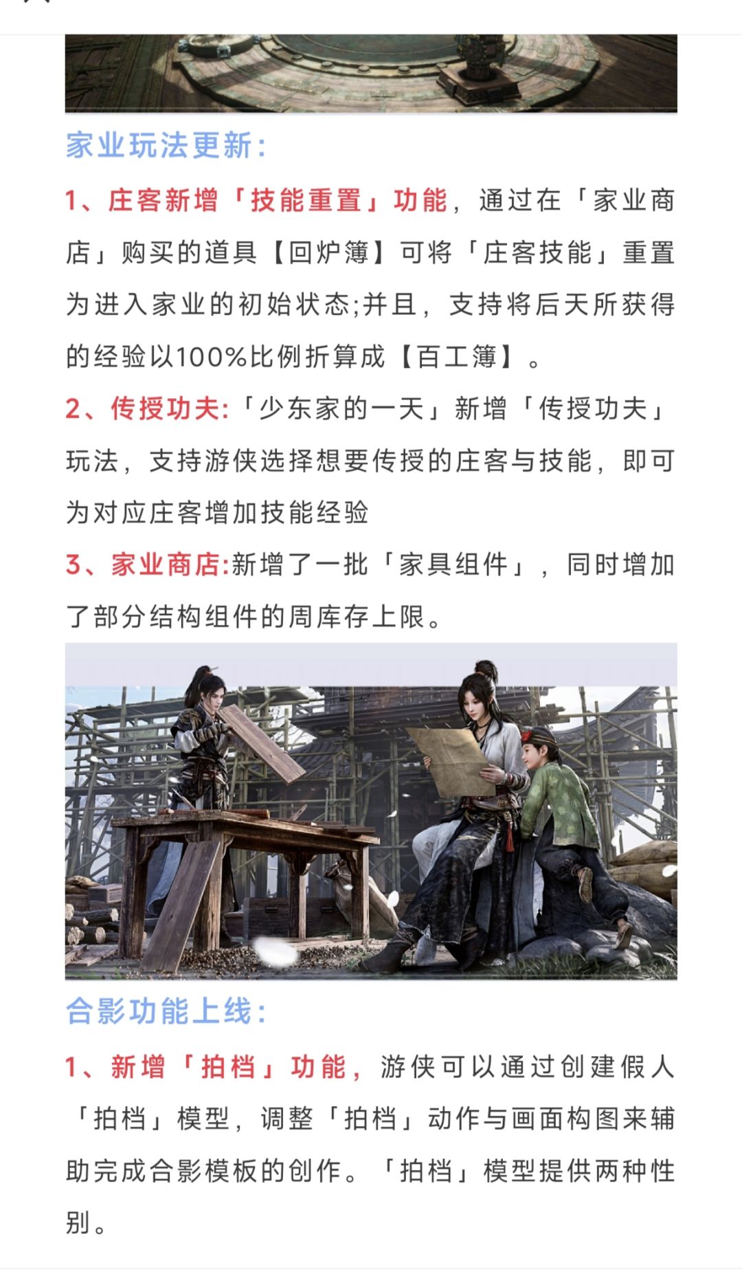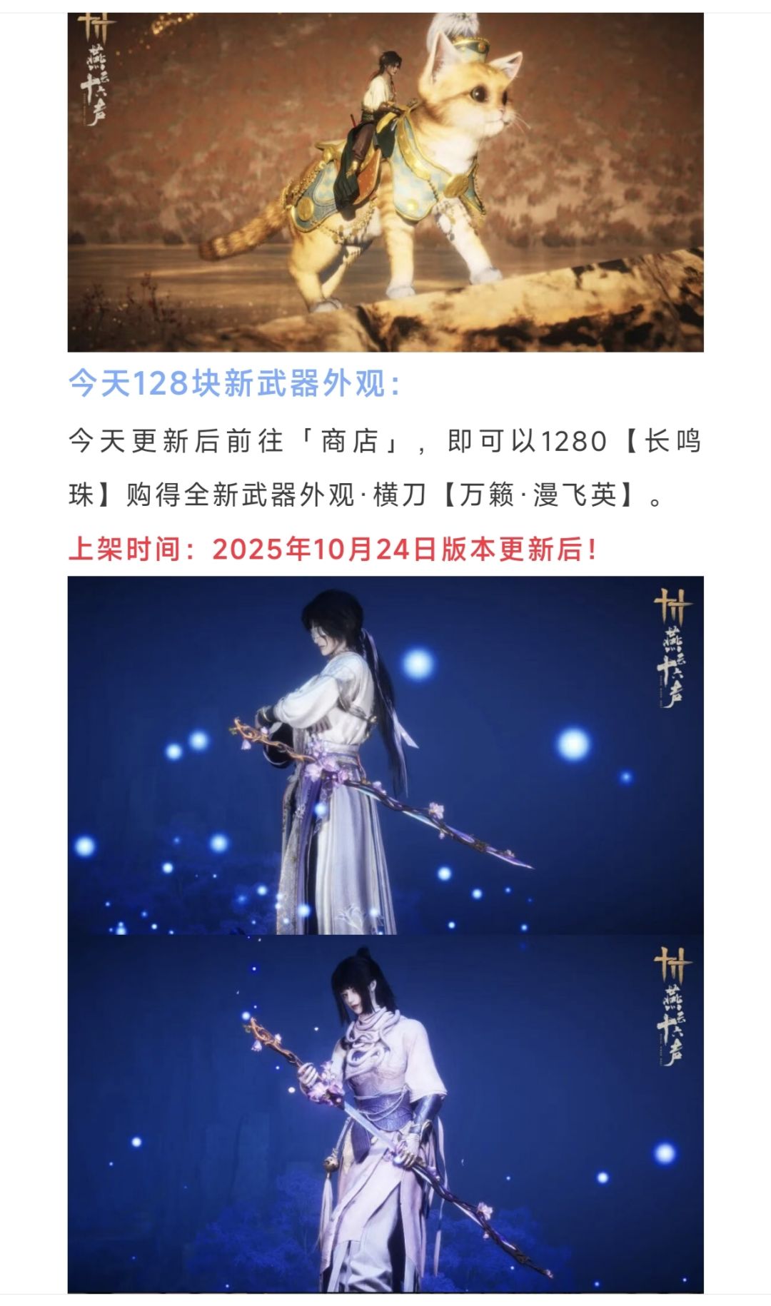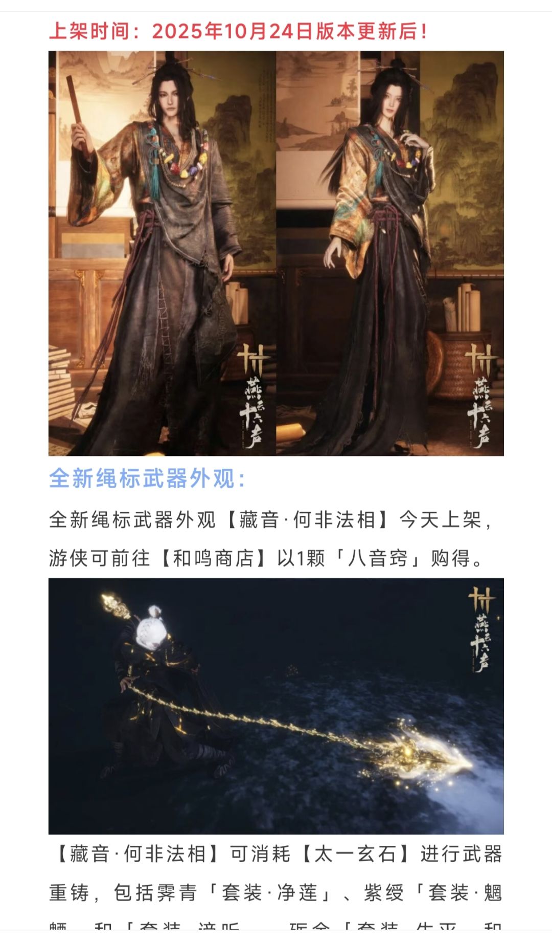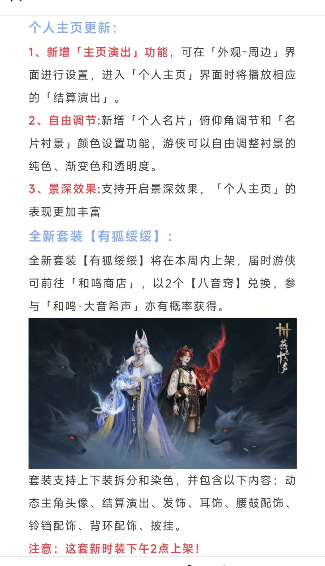 燕云十六声今天更新内容一览,上架6块新时装,离线合照功能,新增【和鸣商店】时装,128块新武器外观,新八音窍武器外观,今天八音窍新发型,不见山经营玩法鲮货郎,不见山天工地窟形之所奋,客新增技能重置,新增拍档功能,新增戏乐境与戏乐荟,新增主页演出功能,不见山新侠迹薤露存辉