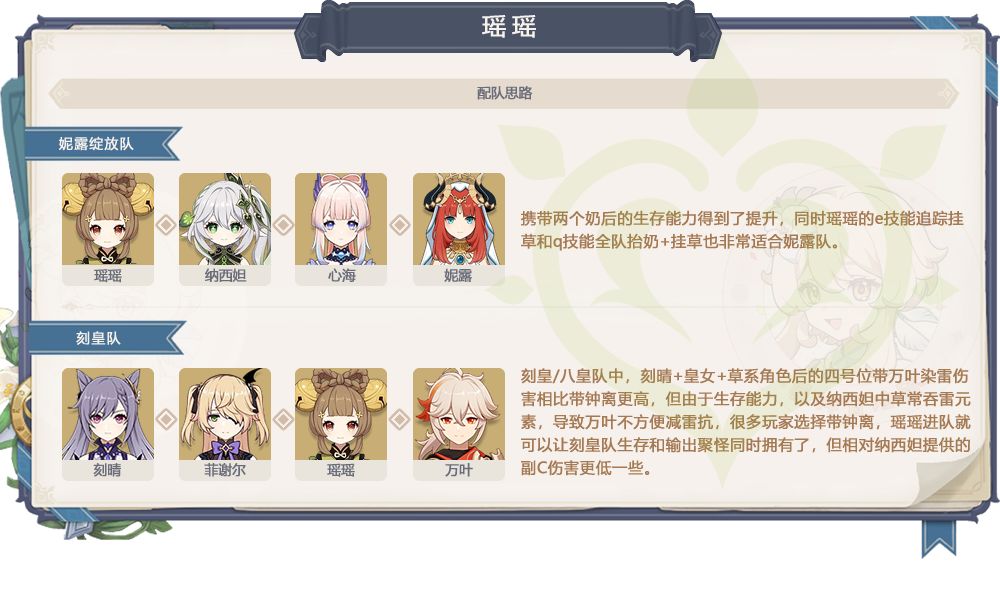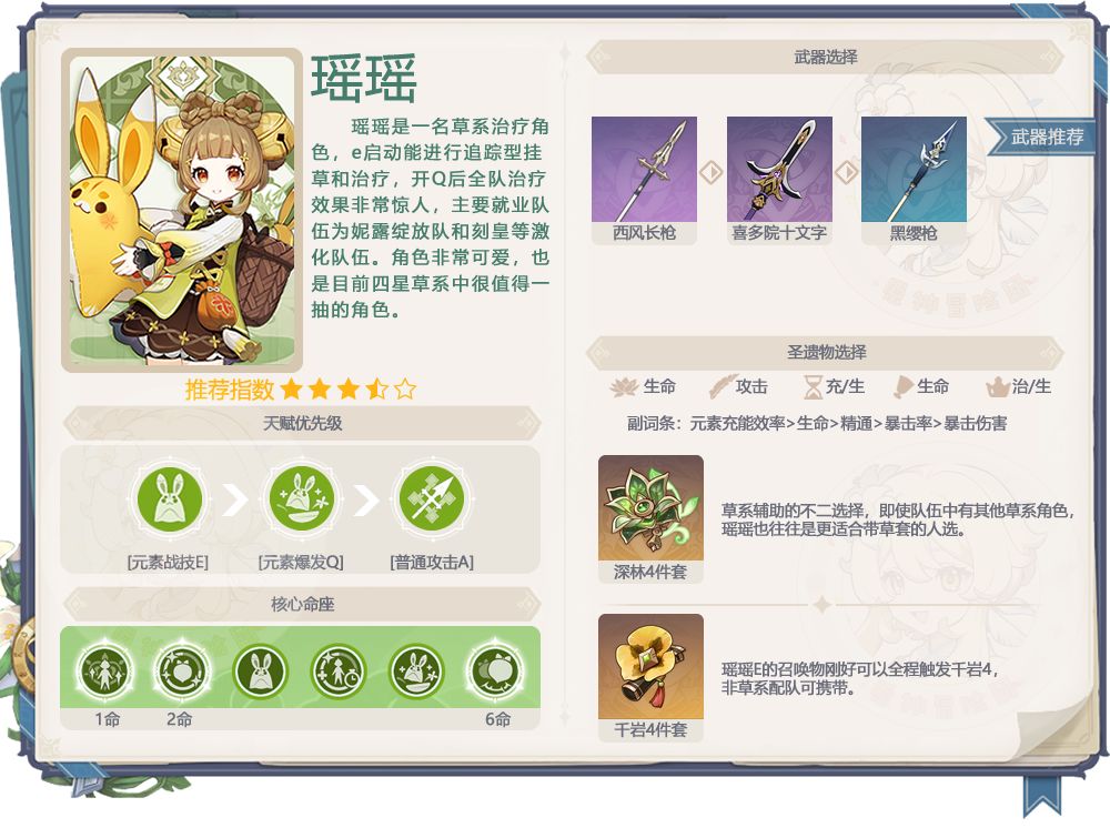 四星【柯莱】【行秋】【瑶瑶】“获取推荐”评级标准: