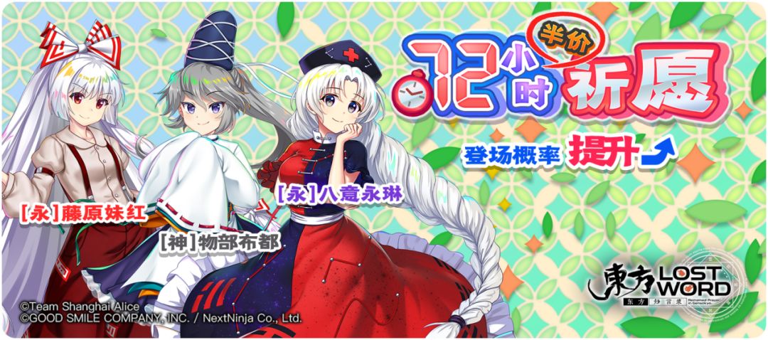 祈愿概率UP角色:[神]物部布都、[永]八意永琳、[永]藤原妹红