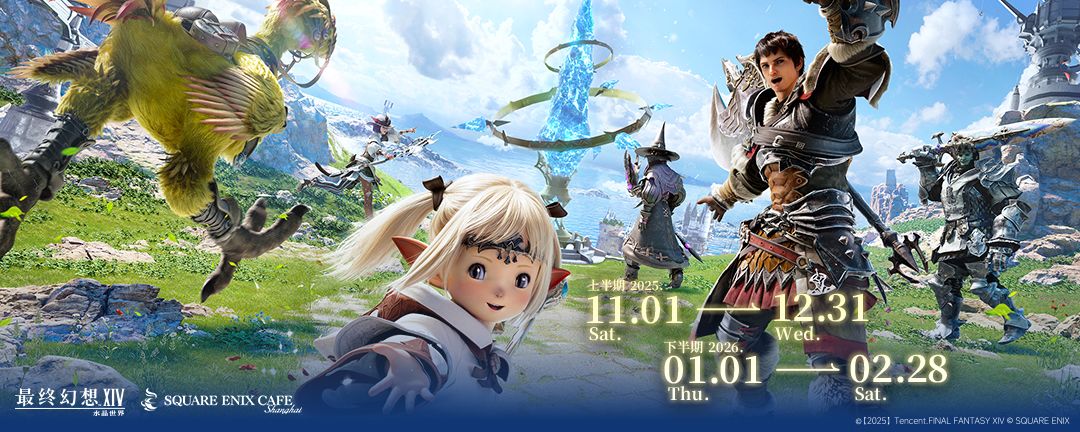 史克威尔艾尼克斯咖啡餐厅上海店将于2025年11月1日(周六)起至2026年2月28日(周六)期间,进行《最终幻想14:水晶世界》主题联动。
