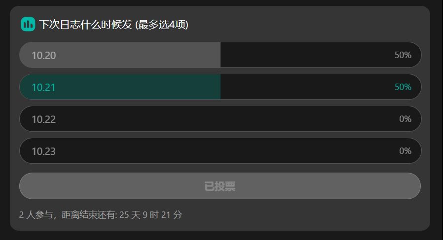 投票结果原定于10.20.5的第五篇开发者日志,我竟然今天才发,哈哈哈哈。