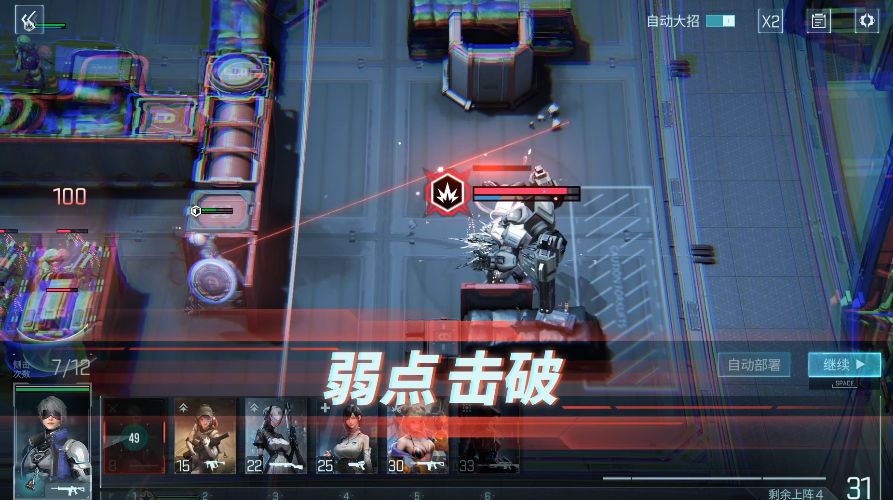 - boss处于弱点未刷新的状态,可以暂时关闭自动部署打断自动部署的上阵操作,等弱点刷新后重新开启,最大化通过队员上阵消除弱点带来的伤害
