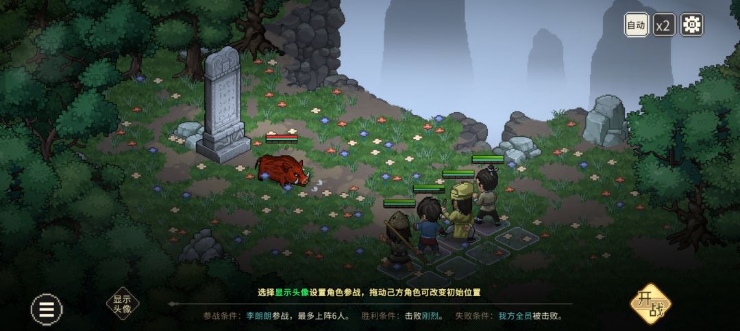 走到图上的位置,触发战斗,这是一场大团战,这一场只让说书人拿人头。