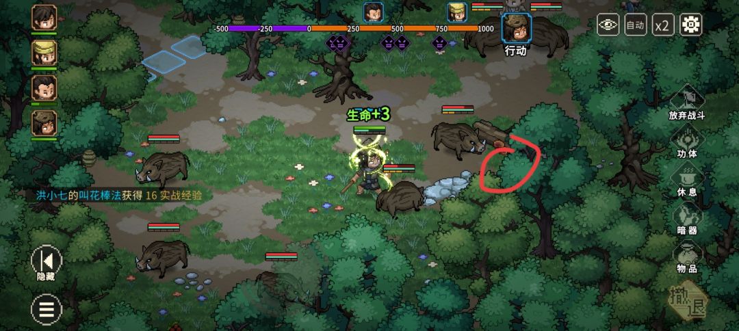 可以看到这里我没有打野怪,但是触发了藏宝图,这是一个机制,用剧情强行中断战斗,相反,战斗也可以强行中断剧情。(后面会用)