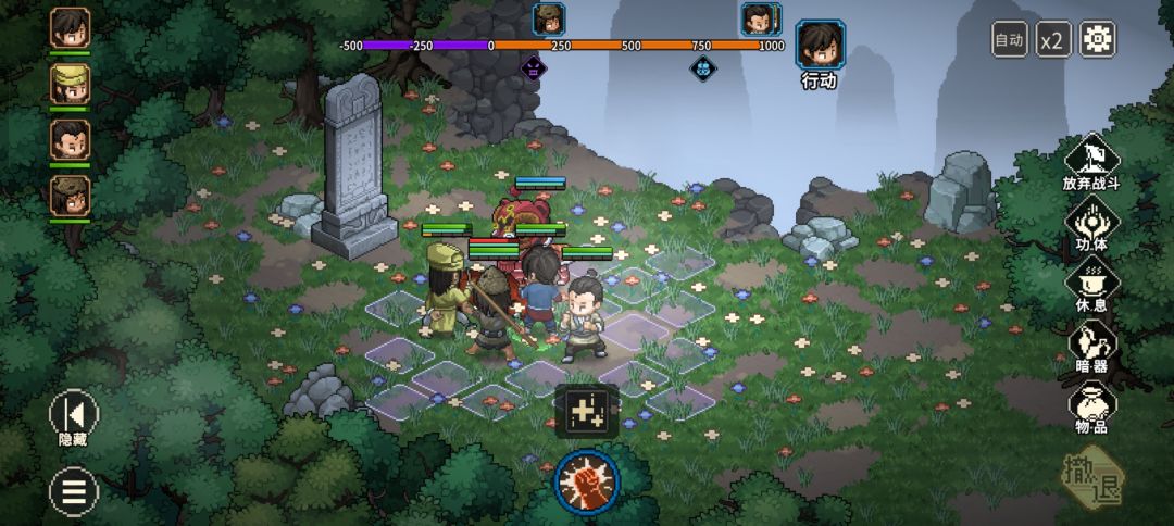 然后洪小七和说书人肯定是先行动的,各打一下,boss会给说书人来一下,这就是为什么给说书人带蓝色护甲的原因。