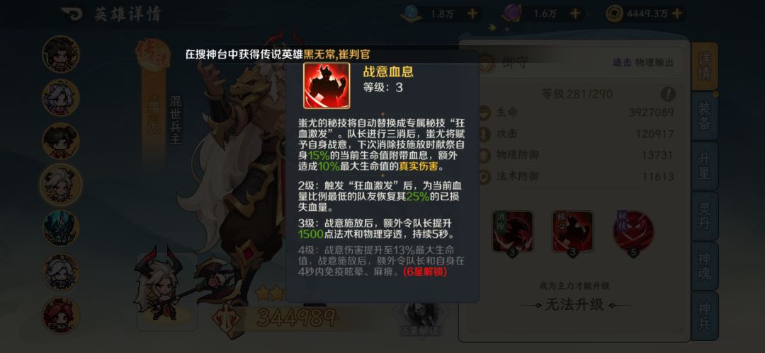 首先我们需要上阵蚩尤 第二天会送一只一星的 他的秘诀很适合这次boss两队一起战斗的模式 一级的秘技就有着令全场队友提供20%的吸血,我们则去将他的秘诀强化到二级获得为全场提升攻击的特效,建议升满等级增益最大化![[心动小镇_点赞]](https://img-tc.tapimg.com/market/images/17a929b2fb36da6ca1d925a7d08acef9.png)